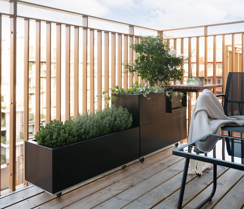 Här hittar du vårt helt nya sortiment av planteringslådor och blomlådor för balkonger och små ytor. Dessa modeller har smalare eller kortare bottenplattor, så att du inte tar upp för mycket av den tillgängliga uteplatsen. Samtidigt har de god jordvolym, praktiska hjul och den unika 10-åriga garantin från BEDD.